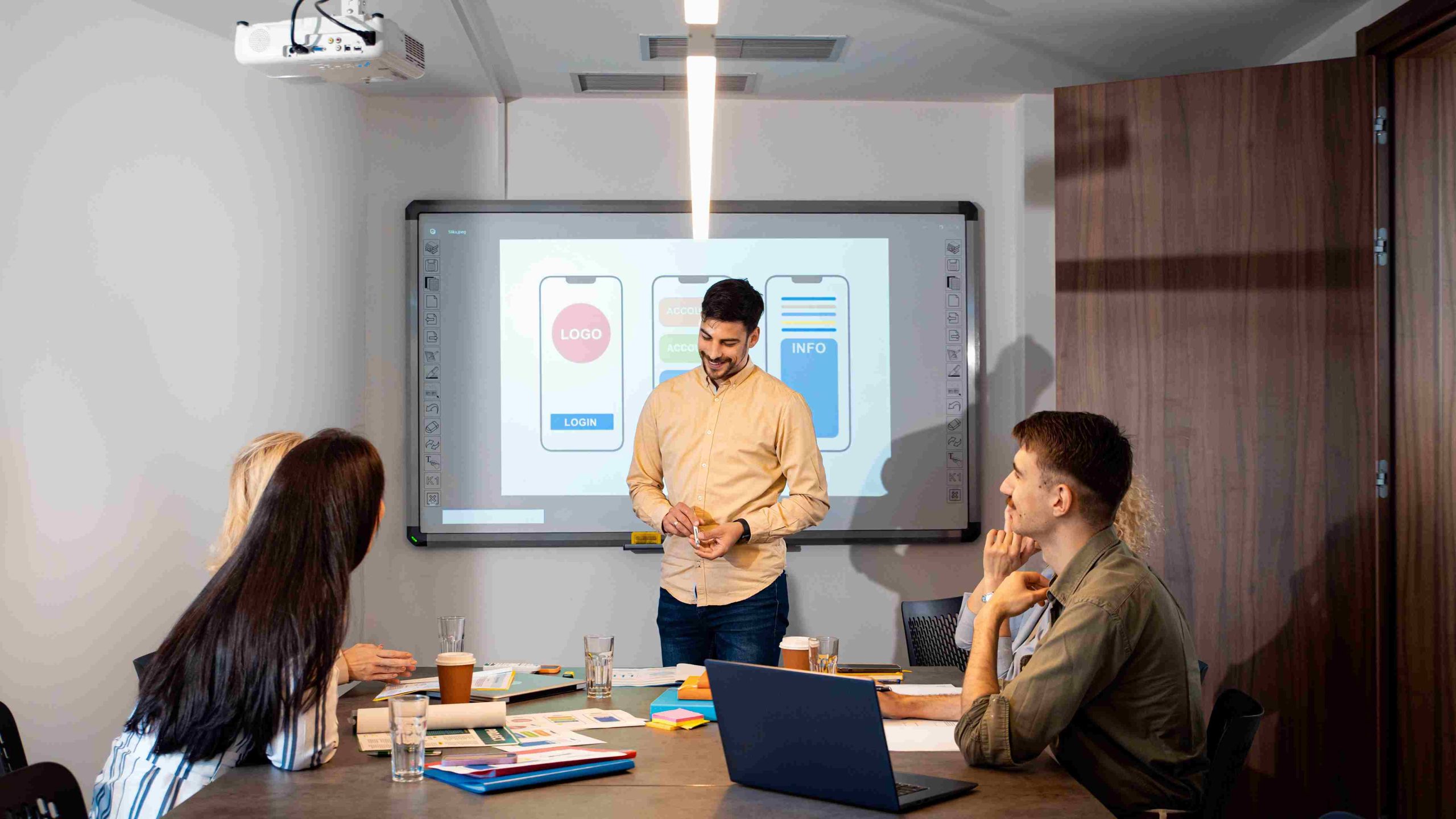 Dalam lingkungan bisnis, digital whiteboard touch screen menjadi alat yang sangat membantu dalam presentasi dan diskusi tim. Beberapa manfaatnya antara lain: