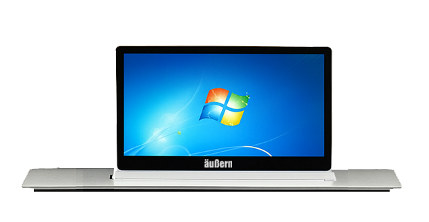 Desain ergonomis dari monitor ini memungkinkan layar miring pada sudut yang pas untuk dibaca oleh peserta (biasanya 15 hingga 30 derajat), namun posisinya tetap cukup rendah sehingga tidak menciptakan “dinding pemisah”. Peserta dapat melihat data keuangan di layar sekaligus membaca bahasa tubuh dan menatap mata rekan bisnis di seberang meja.